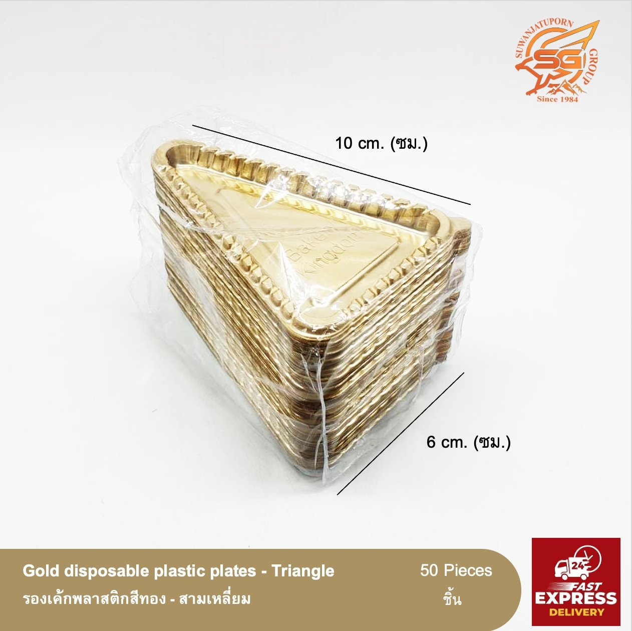 รองเค้กพลาสติกสีทอง – สามเหลี่ยม