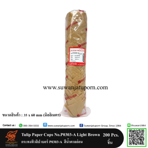 Tulip Paper Cups No.P0303-A Light Brown 35×60 mm. กระทงทิวลิป เบอร์ P0303-A สีน้ำตาลอ่อน 35×60 มม.