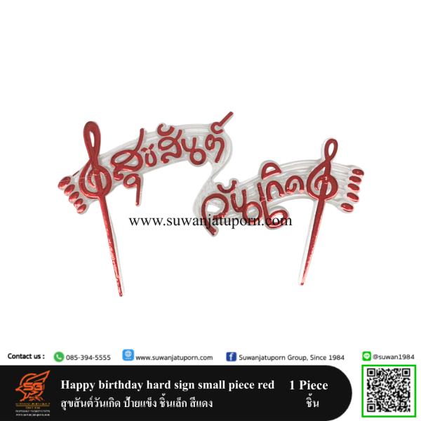 Happy birthday hard sign small piece red สุขสันต์วันเกิด ป้ายแข็ง ชิ้นเล็ก สีแดง