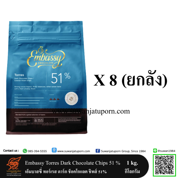Embassy Torres Dark Chocolate Chips 51 % (Carton) เอ็มบาสซี่ ทอร์เรส ดาร์ก ช็อคโกแลต ชิพส์ 51% (ยกลัง)