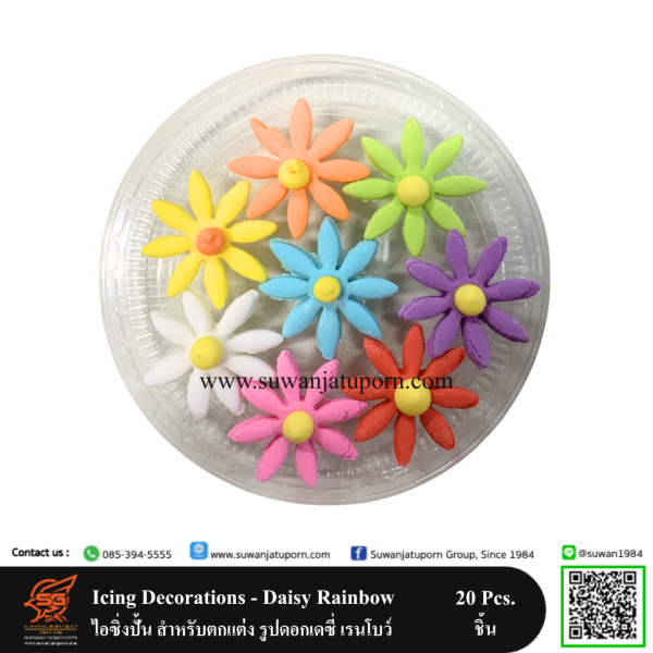 Icing Decorations – Daisy Rainbow ไอซิ่งปั้น สำหรับตกแต่ง รูปดอกเดซี่ เรนโบว์