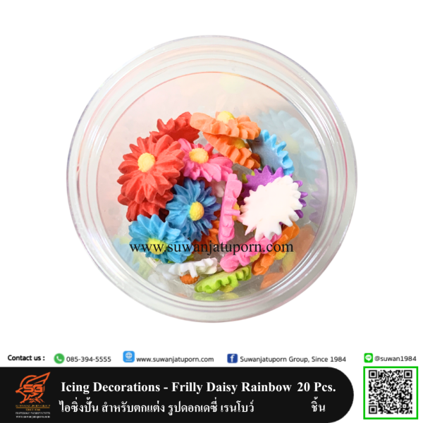 Icing Decorations – Frilly Daisy Rainbow ไอซิ่งปั้น สำหรับตกแต่ง รูปดอกเดซี่ เรนโบว์