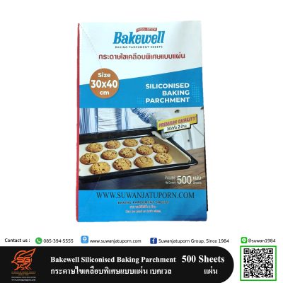 Bakewell Siliconised Baking Parchment กระดาษไขเคลือบพิเศษแบบแผ่น เบคเวล ขนาด 30*40 ซม. (500 ใบ)