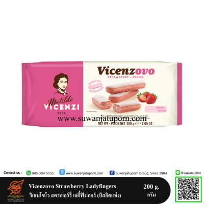 Vicenzovo Strawberry Ladyfingers (Carton)วิเชนโซโว สตรอเอร์รี่ เลดี้ฟิงเกอร์ (บิสกิตแท่ง) (ยกลัง)