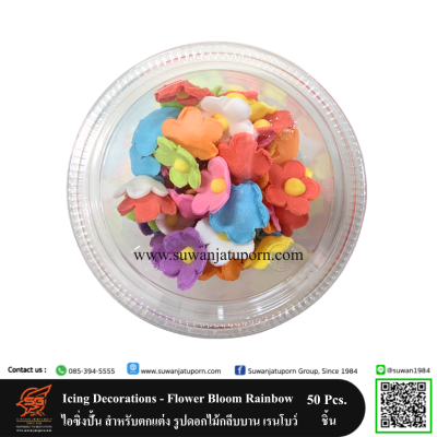 Icing Decorations – Flower Bloom Rainbow ไอซิ่งปั้น สำหรับตกแต่ง รูปดอกไม้กลีบบาน เรนโบว์