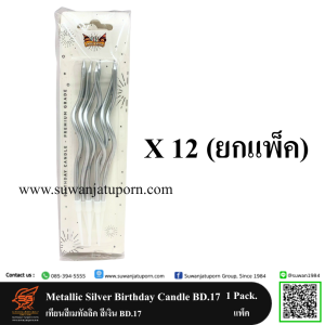 Metallic Silver Birthday Candle BD.17 เทียนสีเมทัลลิค สีเงิน BD.17