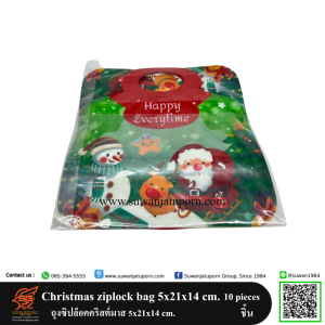 Christmas ziplock bag 5x21x14 cm. ถุงซิปล็อคคริสต์มาส 5x21x14 cm. หูแดง