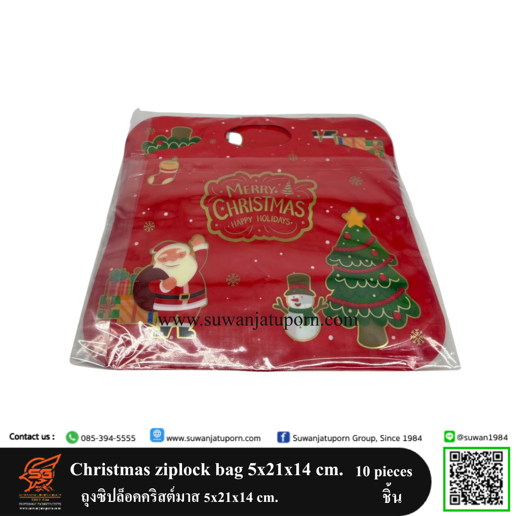 Christmas ziplock bag 5x21x14 cm. ถุงซิปล็อคคริสต์มาส 5x21x14 cm. สีแดง