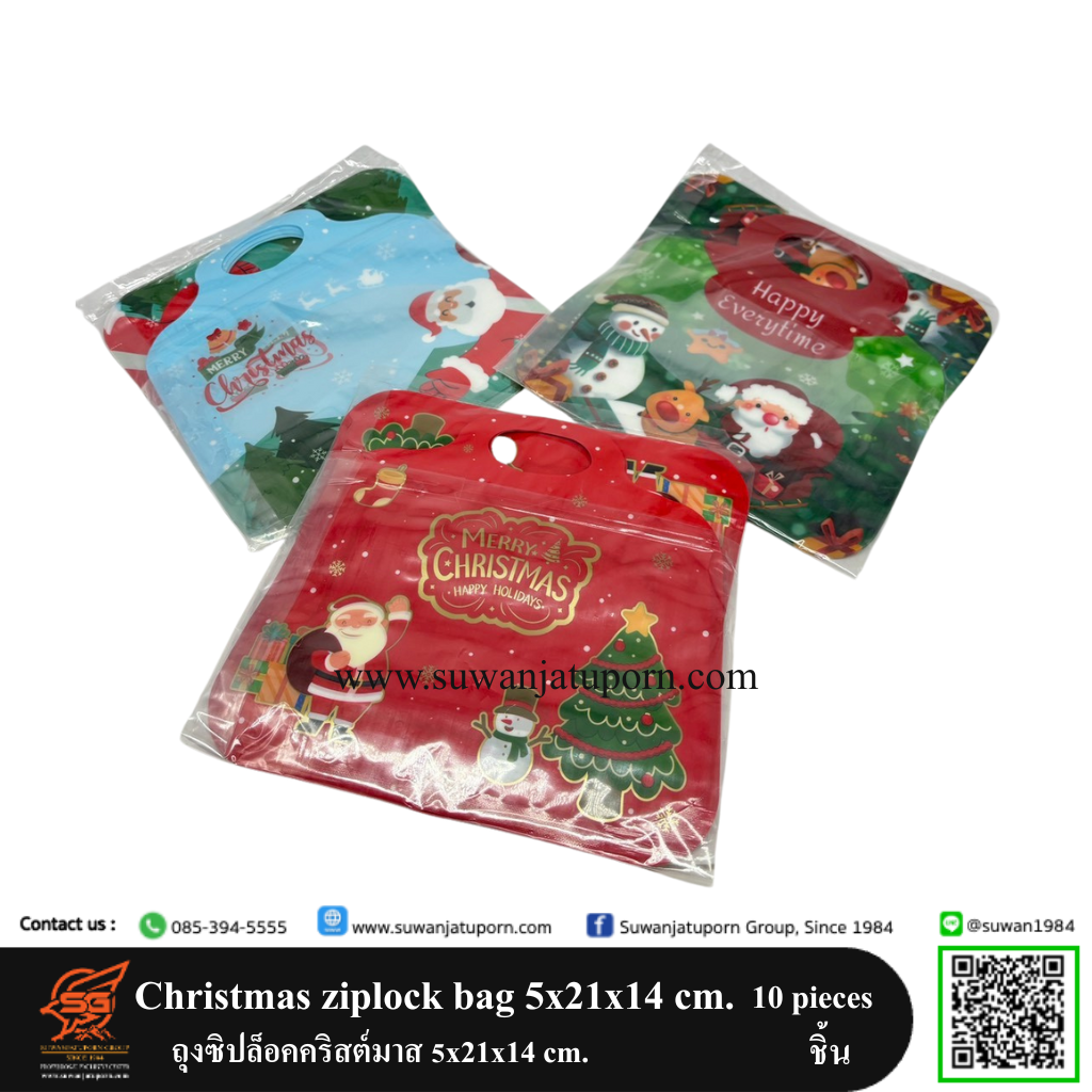 Christmas ziplock bag 5x21x14 cm. ถุงซิปล็อคคริสต์มาส 5x21x14 cm. สีฟ้า