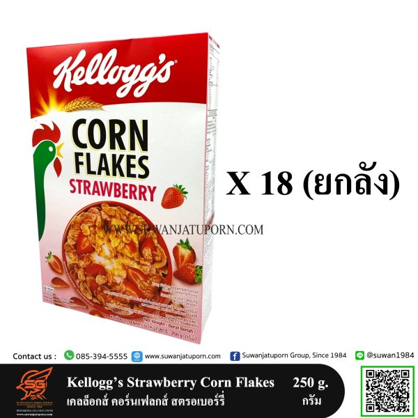 Kellogg’s Strawberry Corn Flakes(carton) เคลล็อกซ์ คอร์นเฟลกส์สตรอเบอร์รี่ 250 g.(ยกลัง)