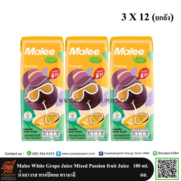 Malee White Grape Juice Mixed Passion fruit Juice (Carton) น้ำเสาวรส ทรอปิคอล ตรามาลี (ยกลัง)