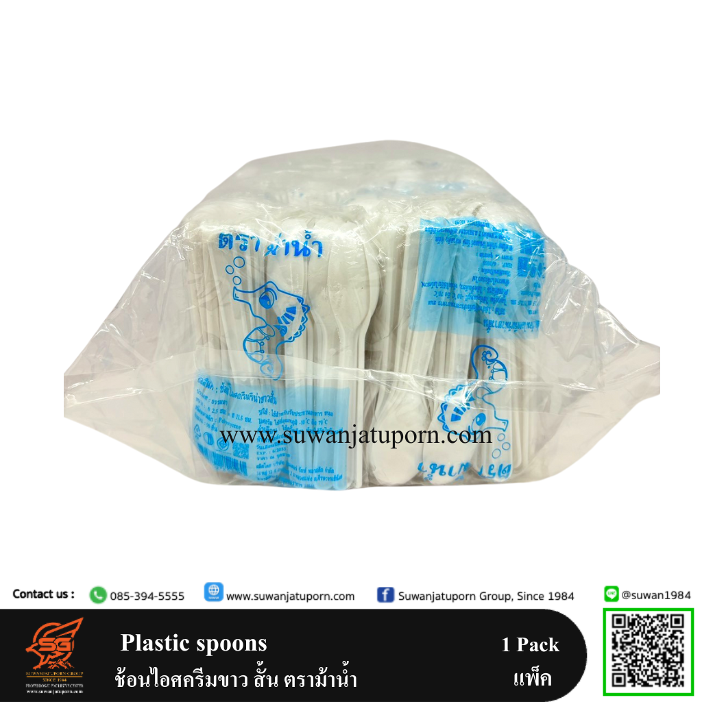 Plastic spoons ช้อนไอศครีมขาว สั้น ตราม้าน้ำ