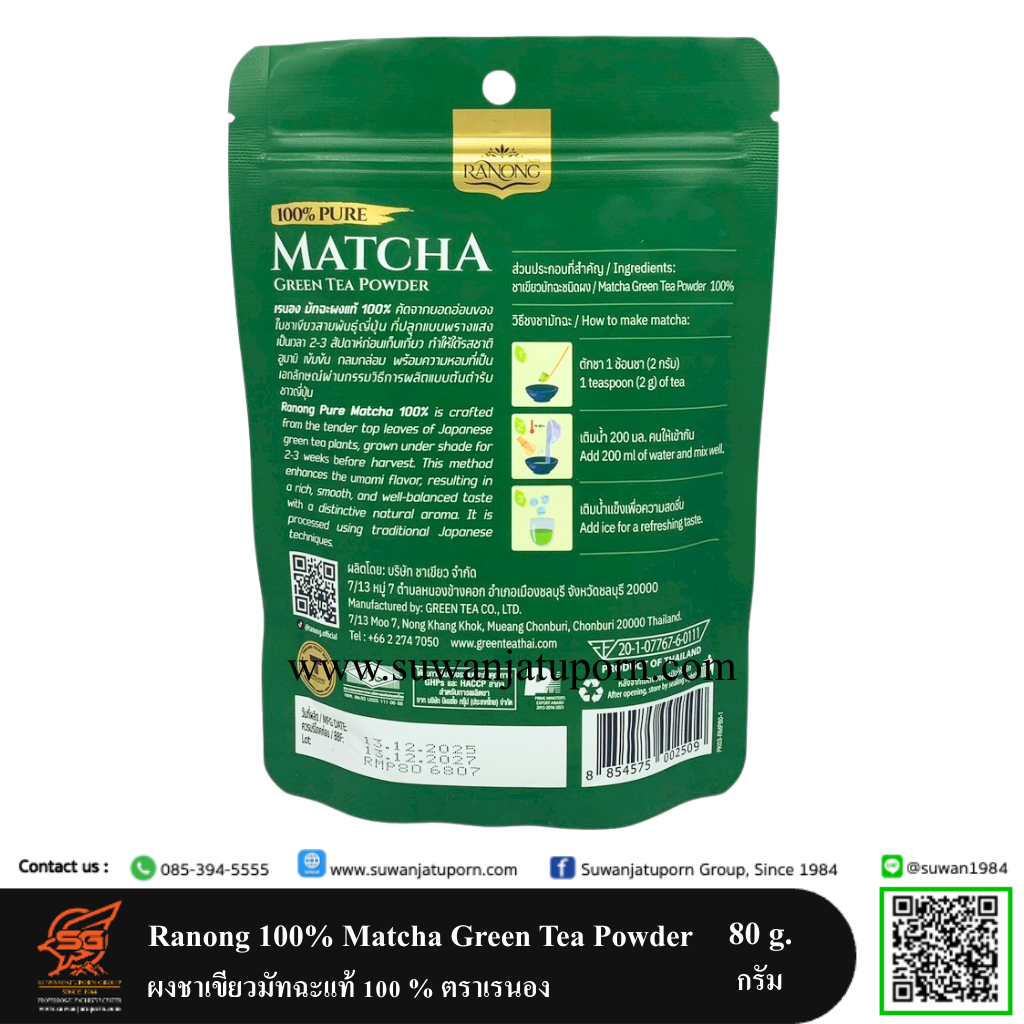 Ranong 100% Matcha Green Tea Powder ผงชาเขียวมัทฉะเเท้ 100 % ตราเรนอง