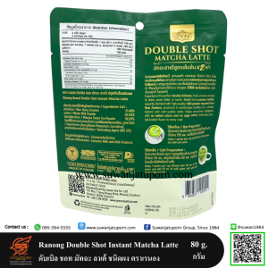 Ranong Double Shot Instant Matcha Latte ดับเบิล ชอท มัทฉะ ลาเต้ ชนิดผง ตราเรนอง