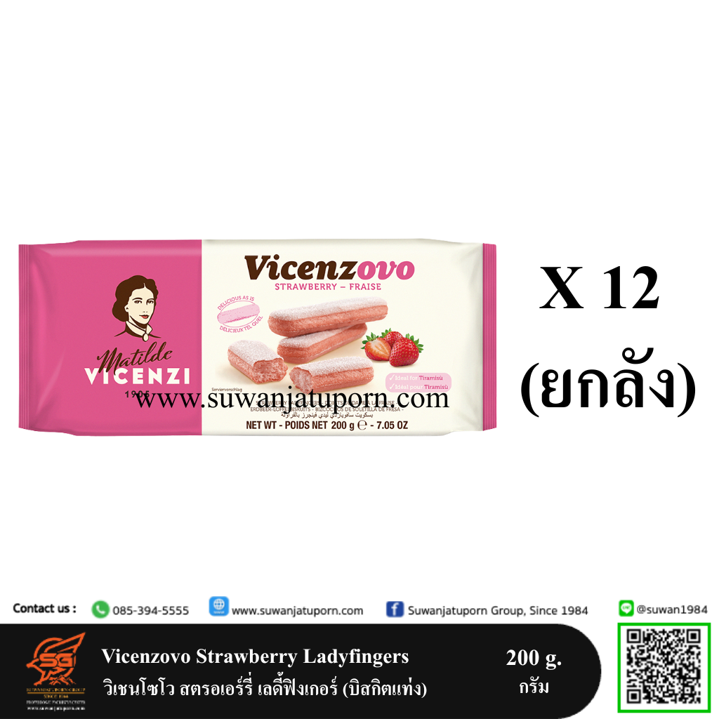 Vicenzovo Strawberry Ladyfingers (Carton)วิเชนโซโว สตรอเอร์รี่ เลดี้ฟิงเกอร์ (บิสกิตแท่ง) (ยกลัง)