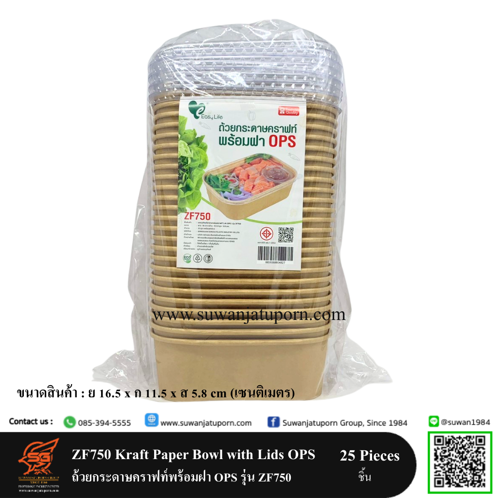 ZF750 Kraft Paper Bowl with Lids OPS ถ้วยกระดาษคราฟท์พร้อมฝา OPS รุ่น ZF750